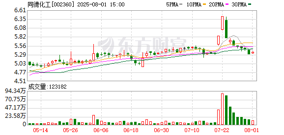 8月1日,同德化工报收于5.37元,总市值为21.6亿元。