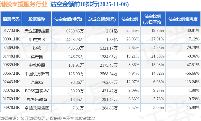 从沽空比例偏离度来看,汽车街、粉笔、天立国际控股沽空比例偏离度位居行业前三,分别为11...