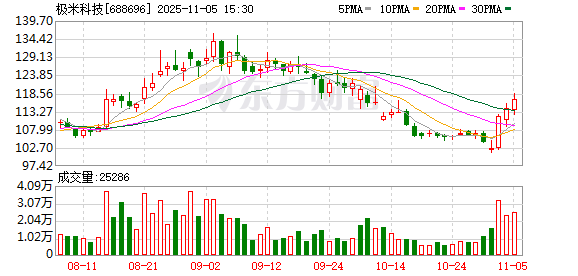证券时报·数据宝统计显示,极米科技今日收盘价为116.68元,上涨2.17%,日换手率为3.61...