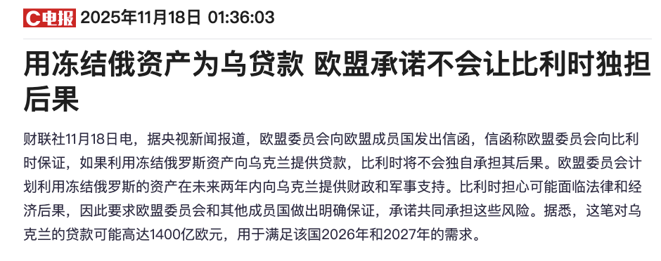 据央视新闻报道,德韦弗在致欧盟委员会主席冯德莱恩的一封信中写道:“仓促推进拟议的赔偿贷款方案将产生附带损害,即我们欧盟(这一方)将实际上阻挠最终和平协议的达成。”