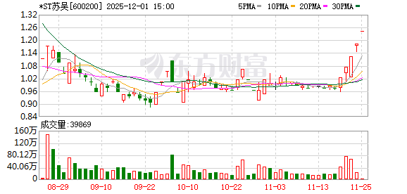 公告显示,*ST苏吴股票进入退市整理期的起始日为2025年12月9日,预计最后交易日期为2025年12月29日,退市整理期的交易期限为15个交易日。