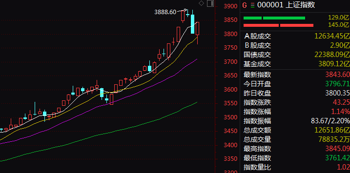 今日,A股探底回升,科技股继续领涨,科创50午后再度发力上攻飙涨逾7%,站稳1300点创3年半新高,创业板指也放量大涨近4%,突破2800点,创3年新高,上证指数、深证成指等午后也纷纷走强,成交再度突破3万亿元。
