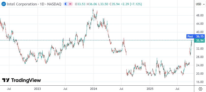 这一进展若能成行,将被视为对英特尔这家陷入困境的芯片制造商的又一次信任投票。受该消息影响,截至收盘,英特尔股价涨超7%,收于2024年4月以来的最高水平。