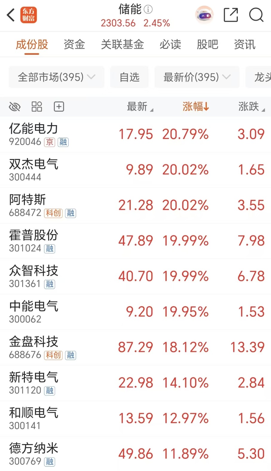 周三(11月5日)储能板块爆发涨停潮,双杰电气、阿特斯等20CM涨停,三变科技、龙蟠科技、通润装备等多股涨停。