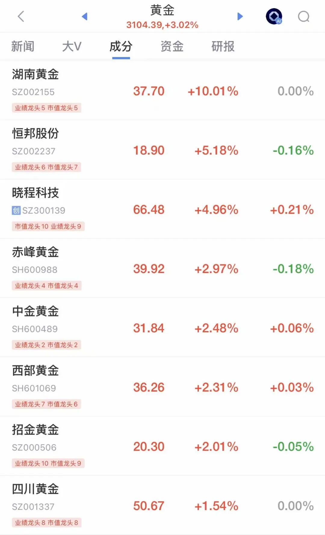 有色板块集体走强,章源钨业、翔鹭钨业等多股涨停。稀土永磁板块拉升,中稀有色涨停,包钢股份接近涨停。黄金股拉升,湖南黄金涨停。算力租赁概念活跃,城地香江、利通电子等涨停。