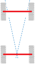 标准的阿克曼转向其转向节拉杆的角度,延伸后,需要交汇于后轴,这时候阿克曼转向修正率就是100%。如果交汇点位于后轴之后,那么阿克曼转向修正率是低于100%的,不同的交汇点,会导致不同的转向特性。