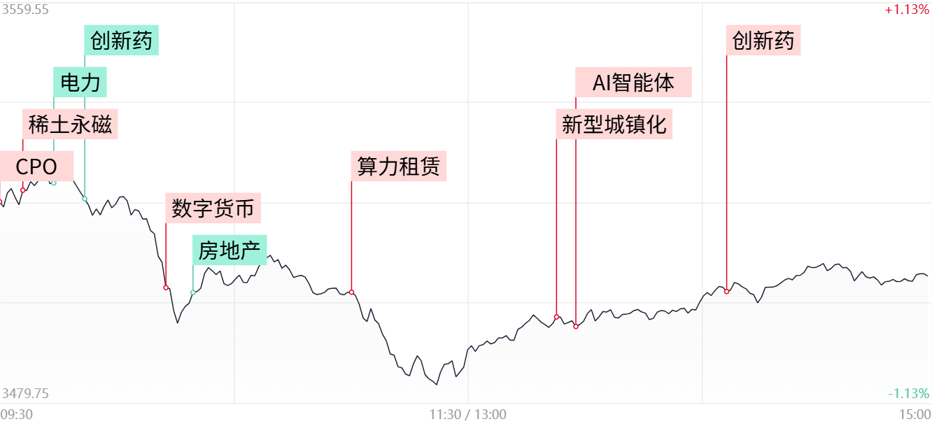 今日市场延续震荡分化,三大指数涨跌不一,量能有所提升。其中AI产业链全线爆发带动创业板指走强,但黄白分时线的分化仍较为明显,截至收盘全市场仍有超4000股下跌。整体而言,本轮反弹行情演绎至今,市场分歧逐步增加,短线震荡幅度明显提升。不过较好的是,在盘中指数走低后,市场仍具有不俗的承接动能,整体震荡上行的结构尚未遭到破坏。而另一方面,虽然高位股的亏钱效应近期有所增多,但截至目前各大热点题材也并未出现真正意义上的退潮信号,更多还是以轮动的形式反复活跃,故应对上仍可遵循相应的节奏,留意一些核心标的低吸埋伏机会。