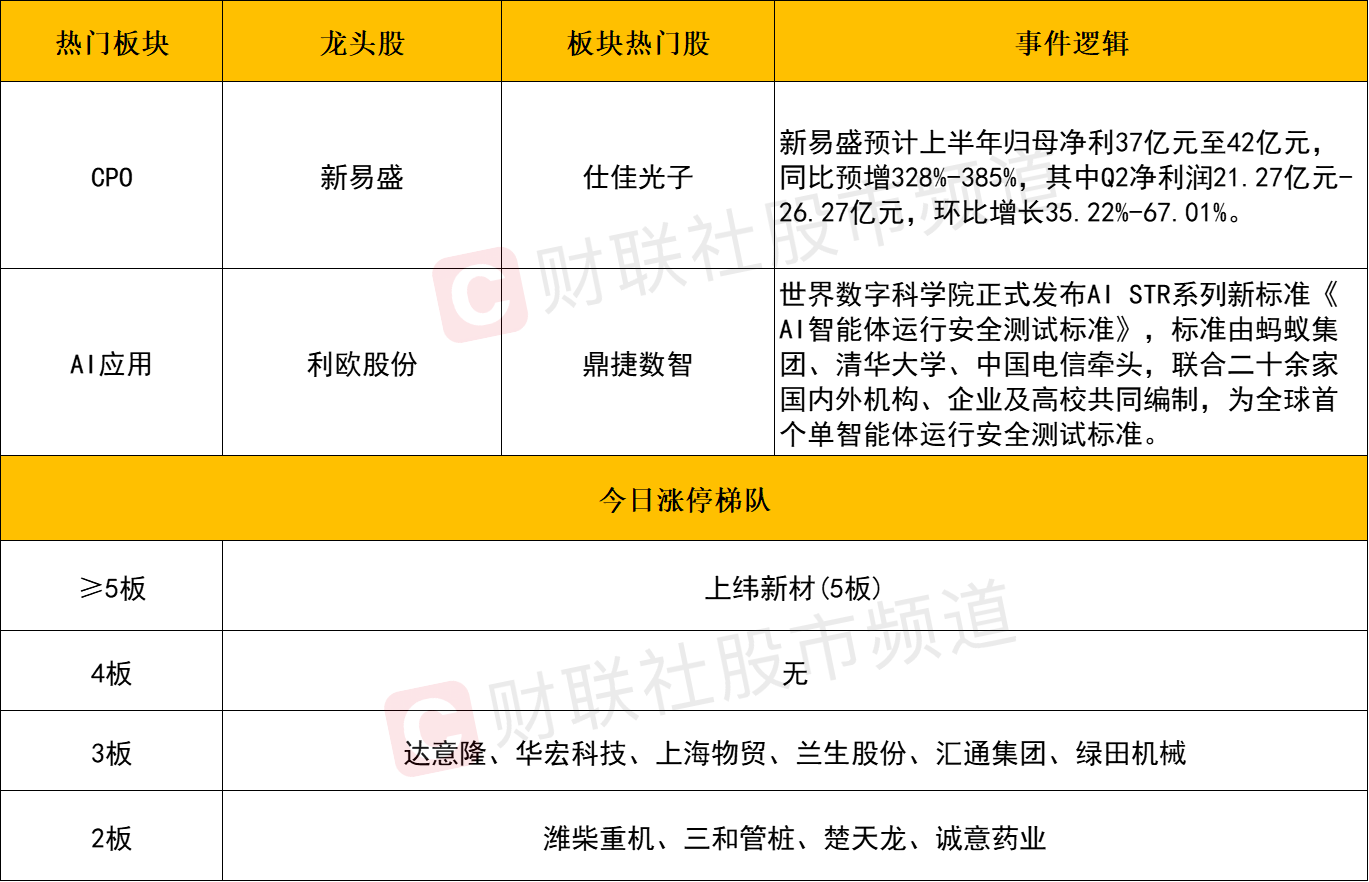 算力硬件方向再度全线爆发,新易盛20CM涨停再创历史新高,中际旭创、东田微、仕佳光子、天孚通信、胜宏科技、光库科技等涨超10%。消息面上,新易盛预计上半年归母净利37亿元至42亿元,同比预增328%-385%,其中Q2净利润21.27亿元-26.27亿元,环比增长35.22%-67.01%。此外,美国英伟达公司创始人兼首席执行官黄仁勋今天在接受央视记者采访时宣布两个重要进展:美国已批准H20芯片销往中国,英伟达将推出RTXpro GPU。